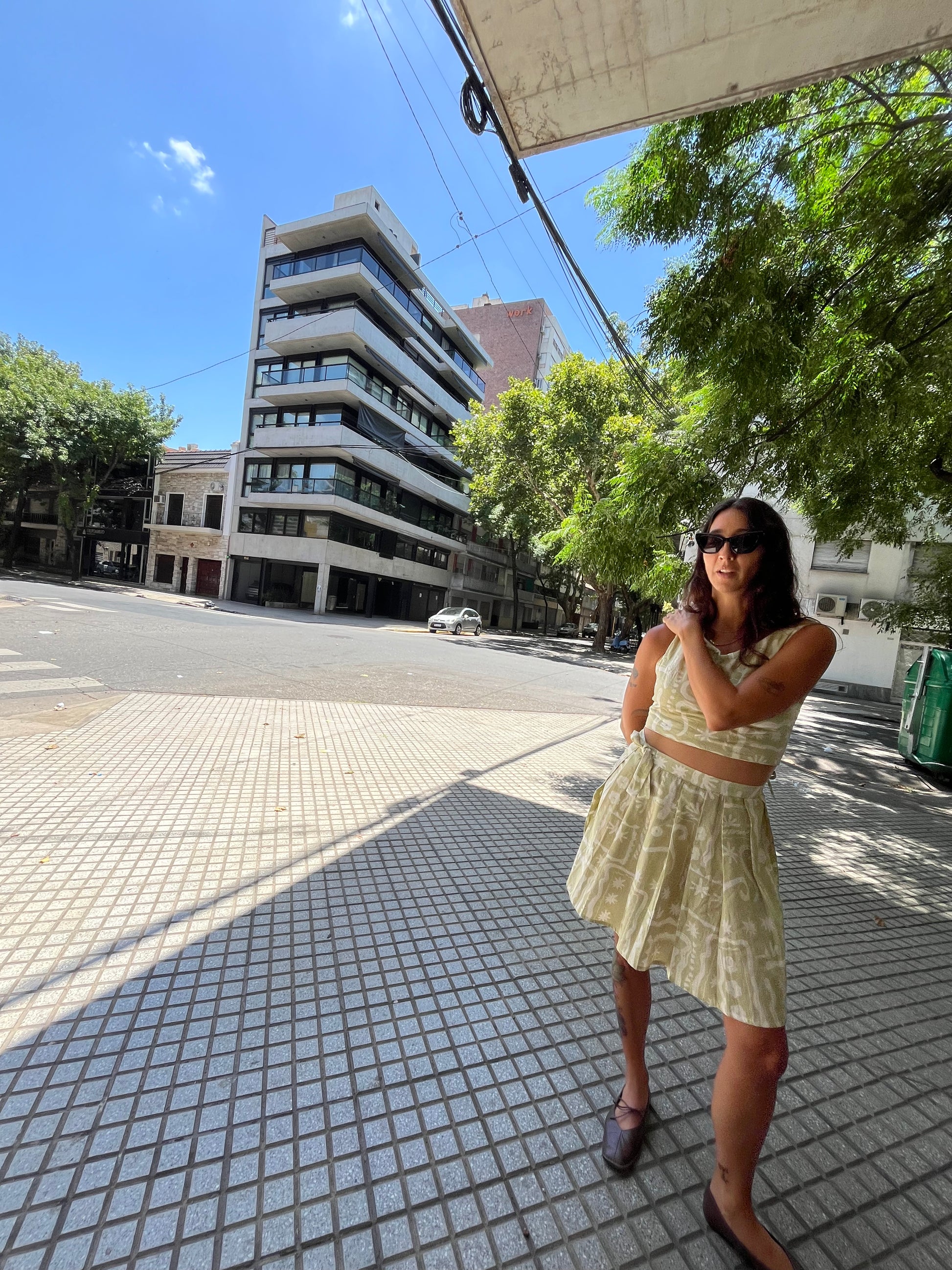 La versión negra es en 100% algodón, y la estampada es en lino 100% , tejido de descarte textil solo cree dos ejemplares.